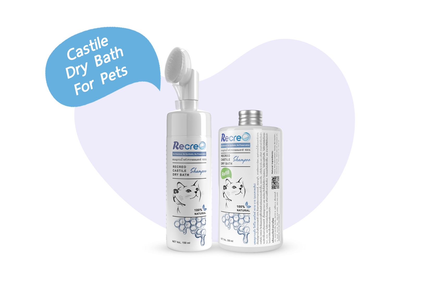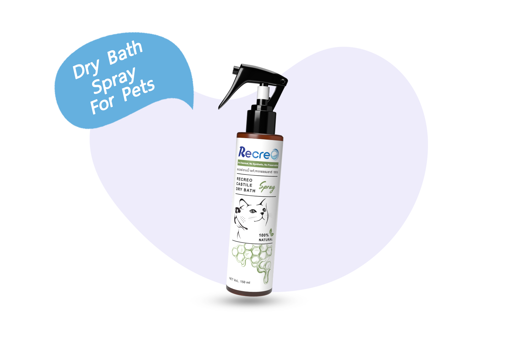 ●วิธีที่ง่ายและรวดเร็วในการดูแลสัตว์เลี้ยงให้สะอาดและมีกลิ่นหอมอย่างเป็นธรรมชาติ แชมพูสเปรย์แบบไม่มีฟอง รีครีโอ แคสไทล์ ดราย บาธ สเปรย์ แชมพูอาบน้ำแห้งธรรมชาติ 100% แบบไม่มีฟอง เหมาะสำหรับสุนัข ลูกสุนัข แมว ลูกแมว กระต่าย หนูแฮมสเตอร์ และ สัตว์เลี้ยงอื่นๆ